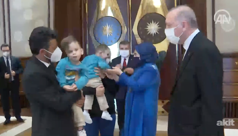 President Erdogan welcomes Siamese twins Derman and Yigit